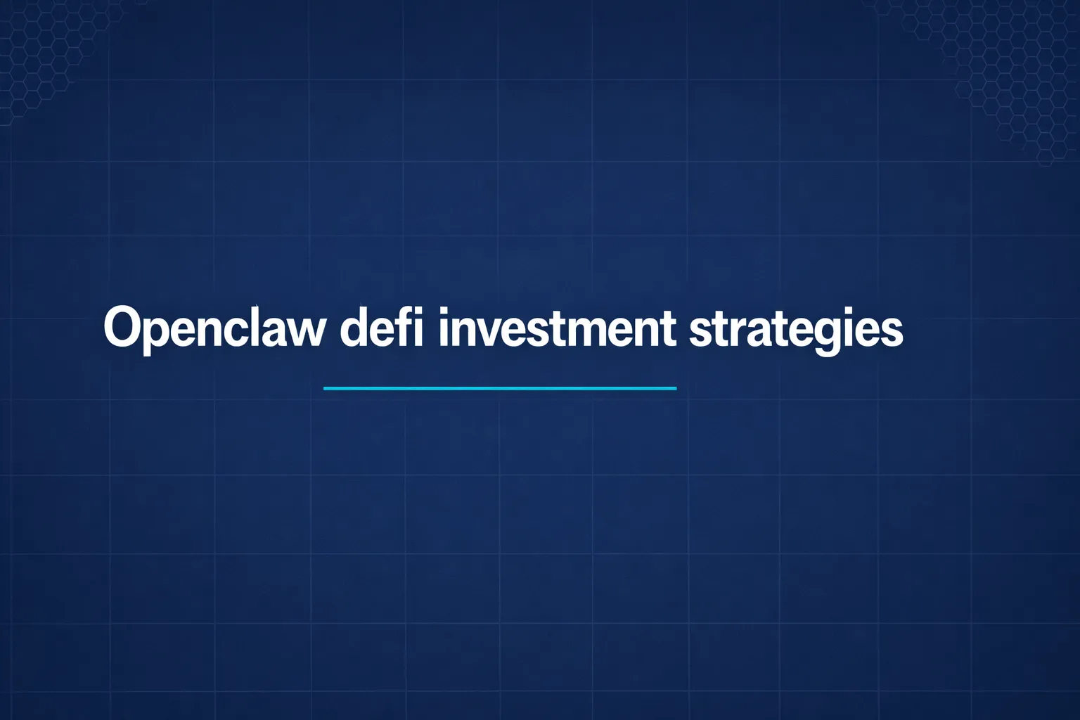 Openclaw defi investment strategies